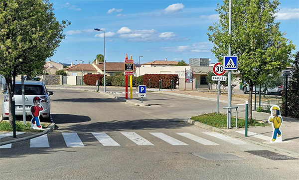 Calvisson a été équipé de totems crayon personnalisés avec différents panneaux comportant des messages de sécurité. En plus des totems de signalisation, nous avons installé des Petits Ecoliers rétroéclairants permettant une visibilité totale le jour comme la nuit.