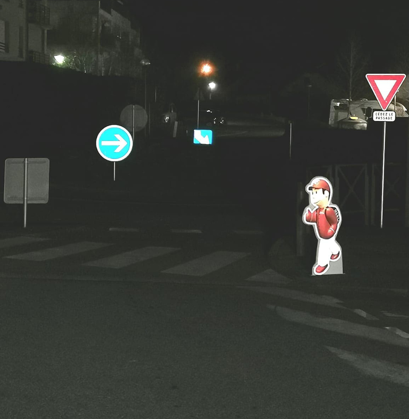 Pendant la période hivernale, les enfants sortent de l’école à la tombée de la nuit. C’est pourquoi nos figurines de signalisation sont toutes équipées de bandes rétroréfléchissantes. Le design est étudié pour que la silhouette apparaissent clairement la nuit et assurer une protection optimale des enfants !Le panneau Petit Ecolier à ajouter sur les totems de signalisation